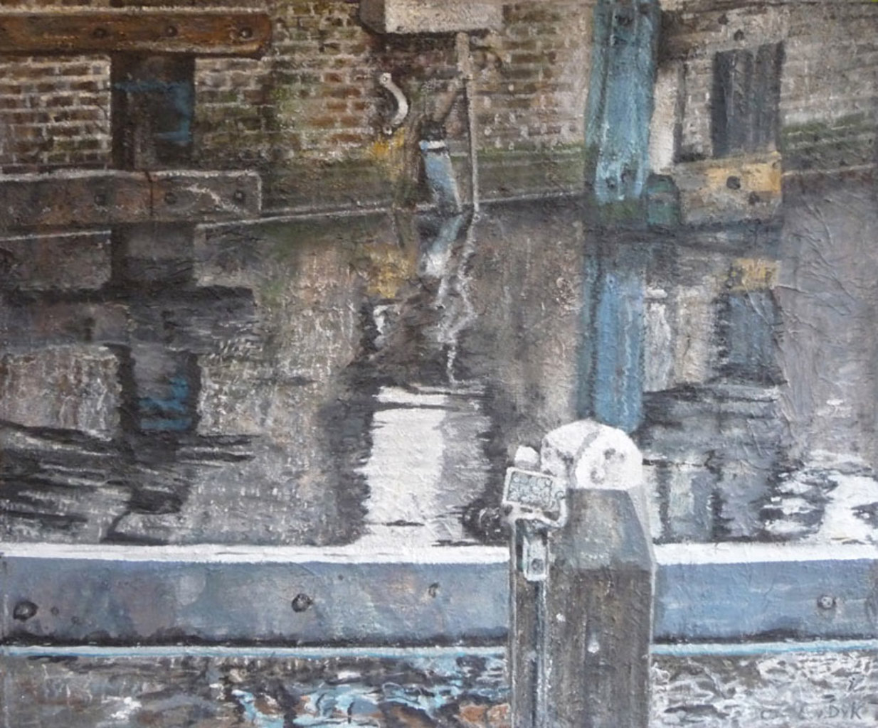 Iets in de buitenwereld intrigeert mij en door deze impressie uit te werken wordt zij blijvend deel van mijn binnenwereld. Laag na laag bouw ik aan de uiteindelijke vorm. Tijdens het werken komt er een stroom van associaties op gang. Het is een constant zoeken naar evenwicht tussen de verf en de andere materialen.