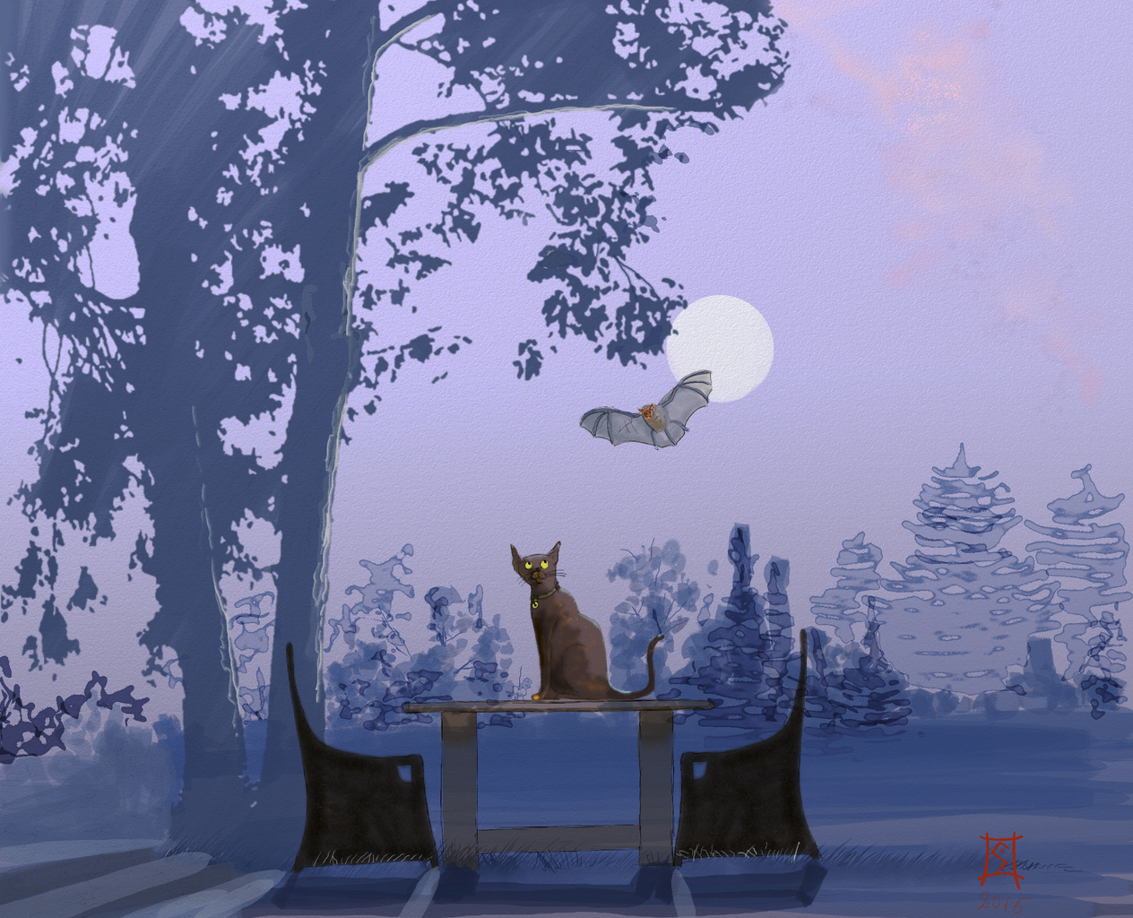 Kat Zomer Cat Summer Vleermuis Bat Summernight Zomeravon