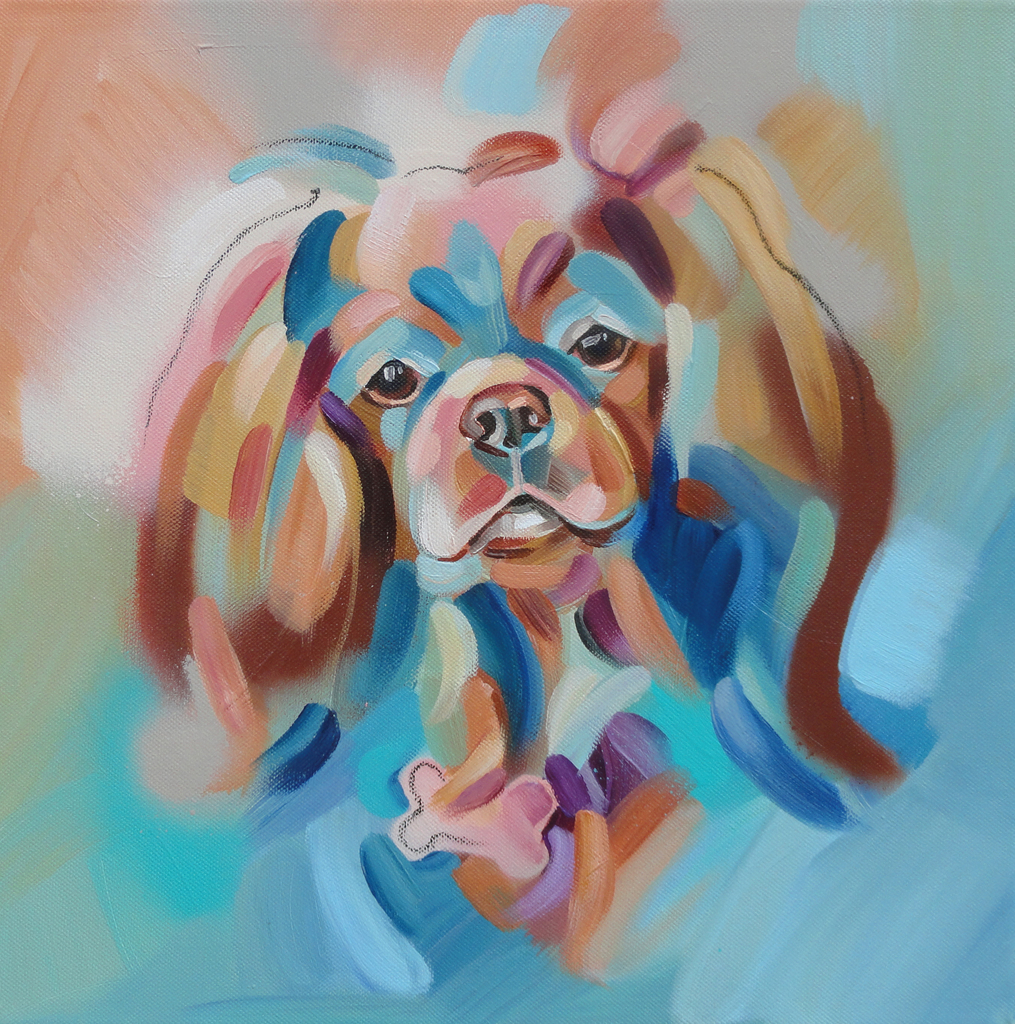 Hondenschilderij in aqua tinten