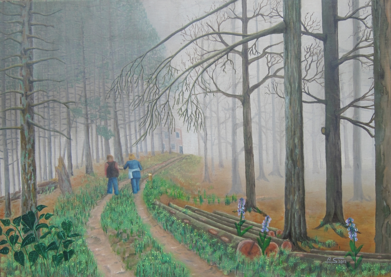 Wandelaars In De Mist Olieverf