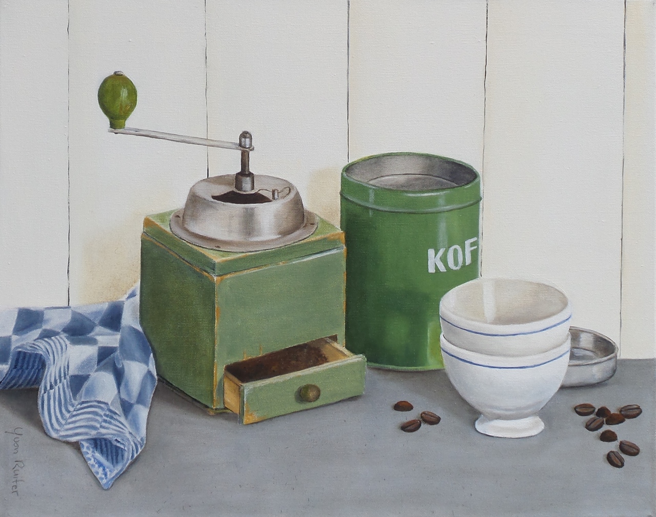 Koffie Keuken Nostalgie Trommel Theedoek Vintage Mok Drink Koffieboon Kofiiemolen