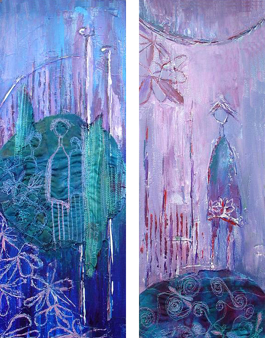 Mensfiguren Blauw Groen Blue Green Lila Human Diptich Figures Lilac