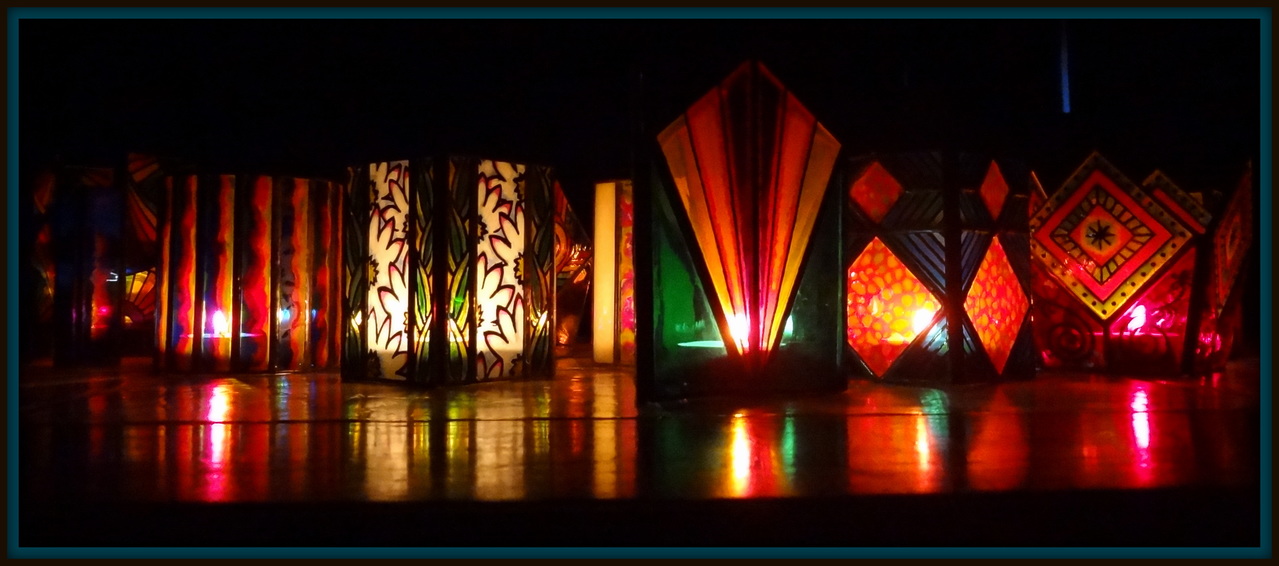 De skyline van... ...een verzameling tiffany windlichten, gemaakt door Ellen Janszen en Tom Rövekamp