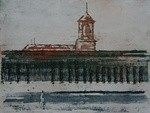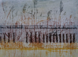 Impressie van een waddendijk Ets inclusief passe-partout en lijst