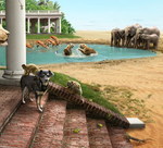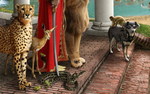 Straathonden Asielhonden Asielhond Hond Honden Dieren Dier Dierportret Schilderij Schilderkunst Etende Eten Hondenkoekjes Lekkers Smikkelen Roedel Groepsgedrag
