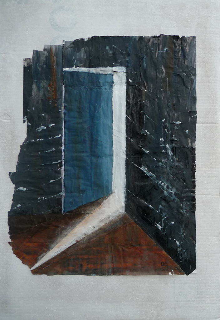Zwart Blauw Blue Mixed Media Black Deur Door Ribkarton Binnenkomen Cardboard Willyschut Enter
