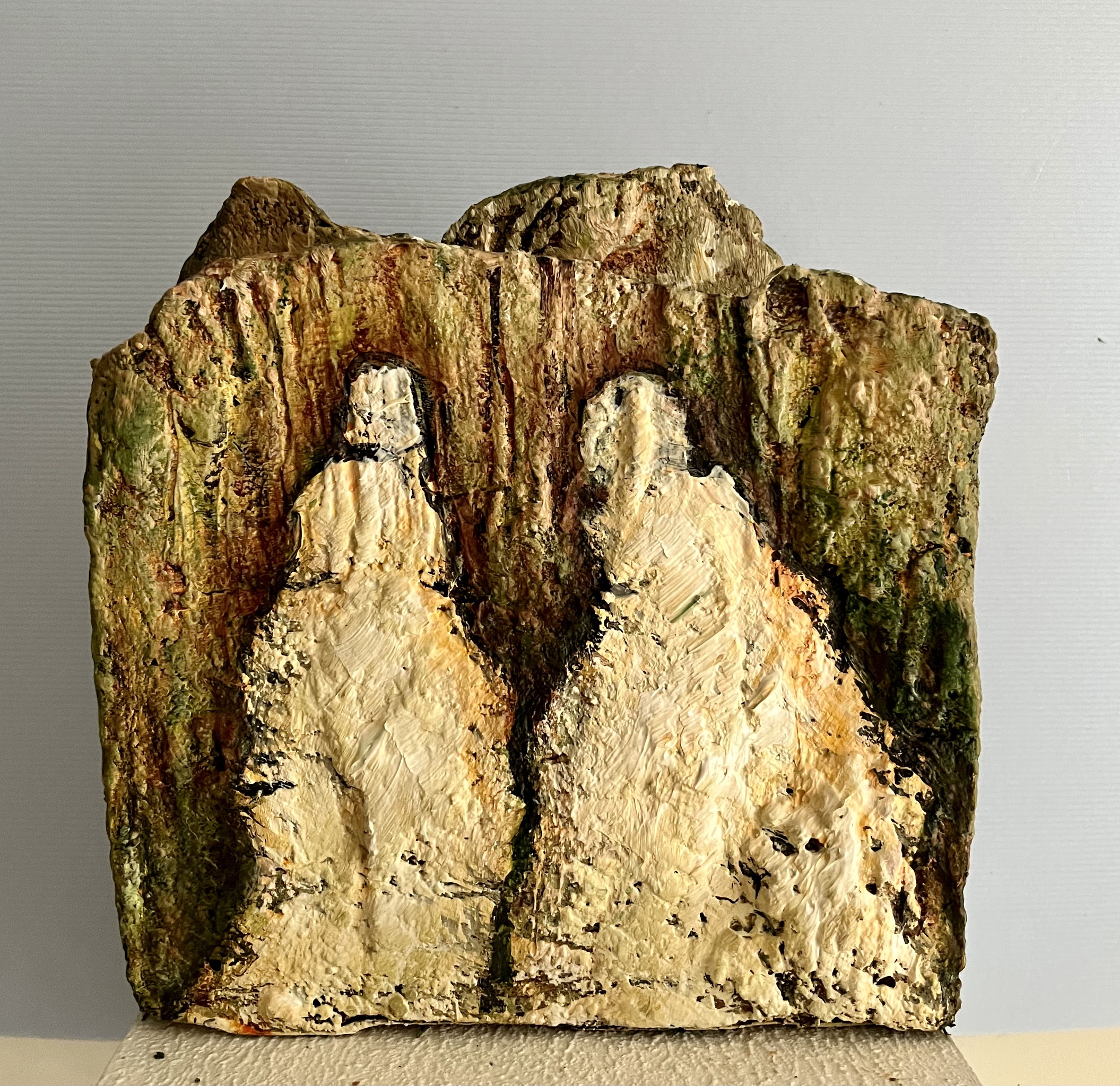 Mijn schilderijen: olie-en acrylverf , gemengde technieken, diverse maten. Mijn Keramische Beelden: geglazuurd of bewerkt andere materialen. Mijn Urnen/Herinneringsbeelden: gemengde technieken