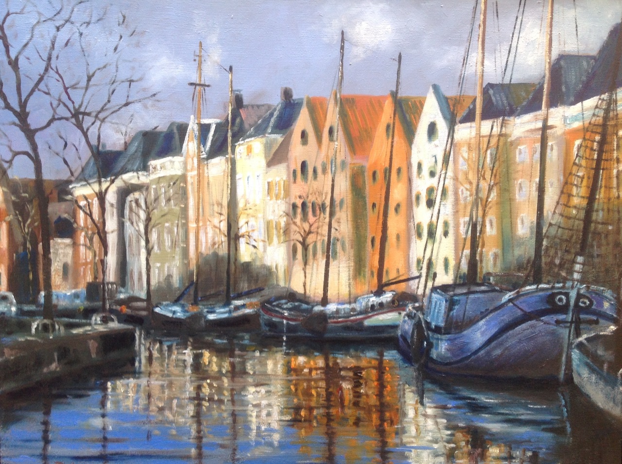 na pensionering en met enige aanleg voor tekenen, 7 jaar geleden schilderles genomen. Schilder vooral realistisch mn.water, luchten en landschappen.