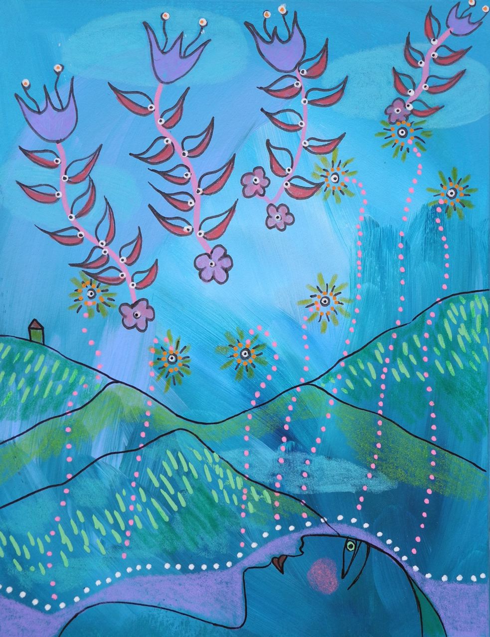 Landschap Bloemen Vrouw Woman Bergen Moeder Aarde Mother Landscape Flowers Droom Mountains Earth Dream