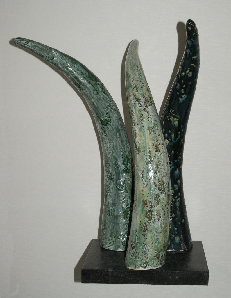 Mijn aandacht kwam door de stroperij van olifanten, dit om de ivoren hoorns. Ik maak ze nu van keramiek, afgewerkt met bijzondere glazuren.