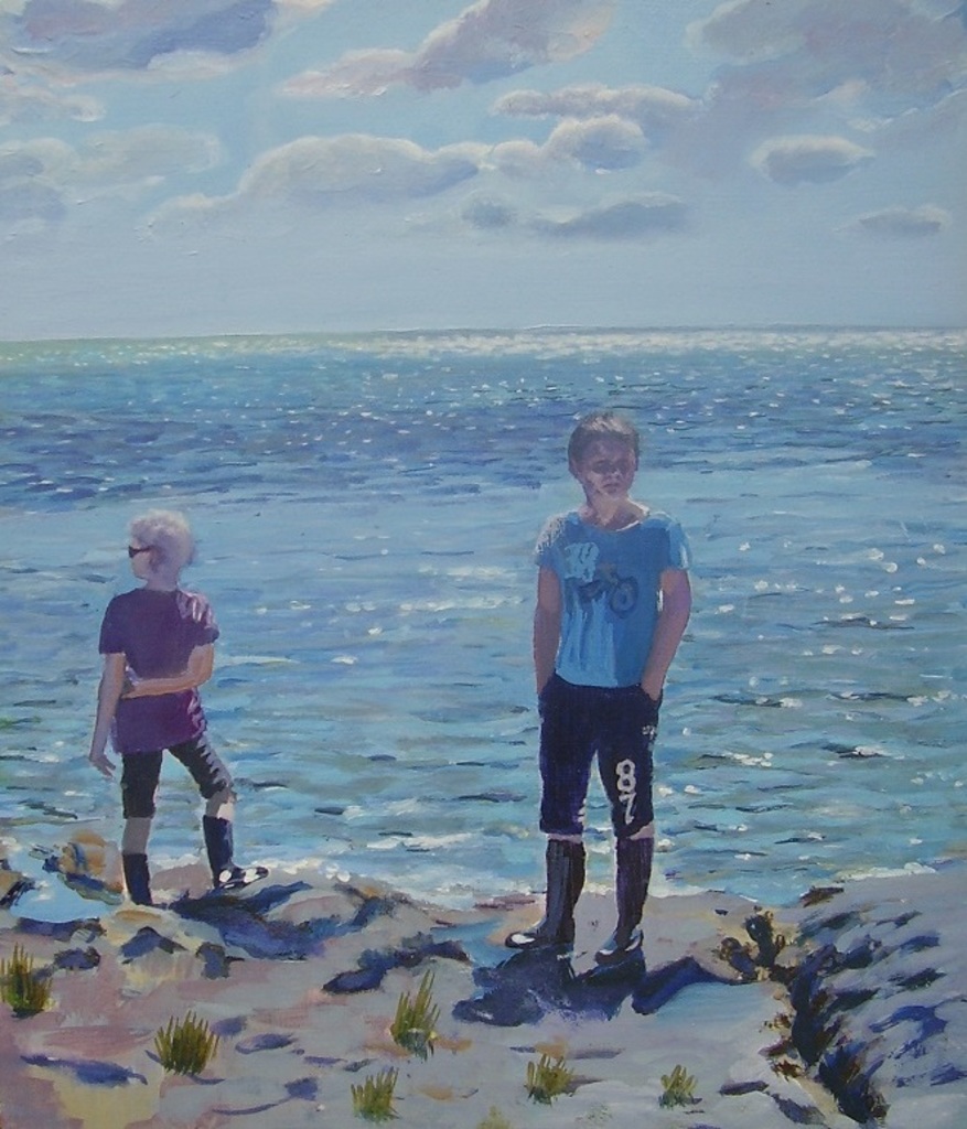 Onze 2 jongens staan hier wat in het tegenlicht wat op het Ijsselmeer schijnt. Aan de hand van vakantiefoto's gemaakt in Gaasterland.