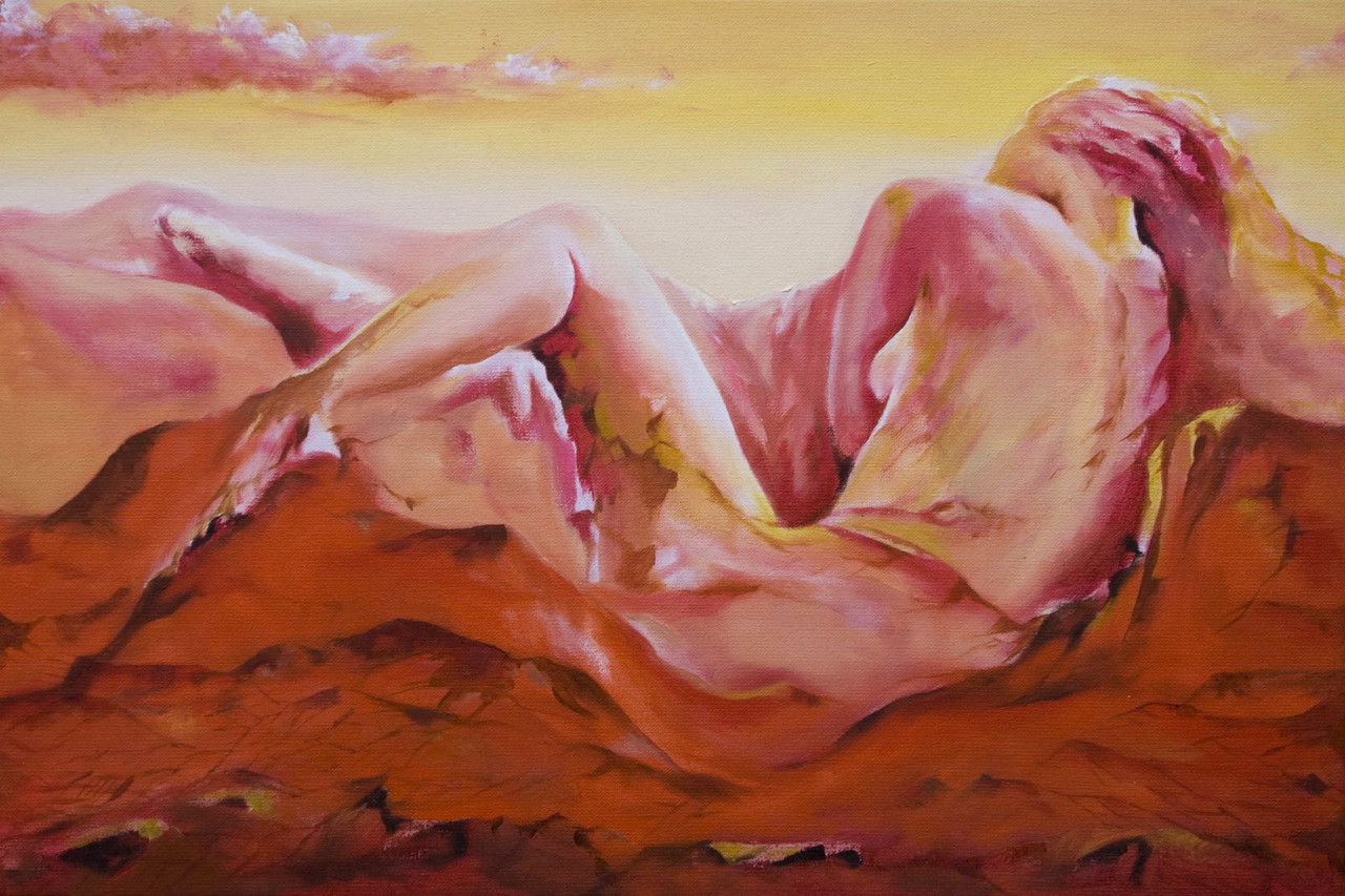 Vrouw Landschap Surrealisme Geel Rood Woestijn