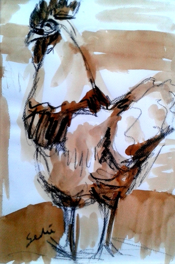 Schilderij Bruin Painting Brown Kip Chicken Landelijk Relatiegeschenk Bister Kippenkunst Landlife