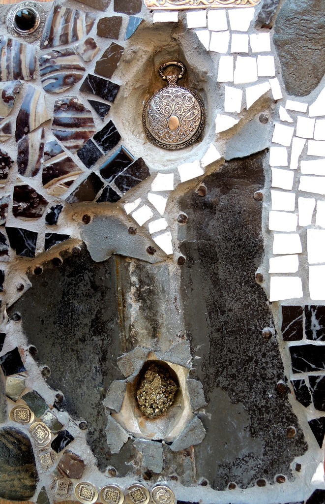 Nisje 12 keramiek,zink,pyrite,medaillon,steen,zilververf Niche 12 ceramics,zinc,pyrite,medaillon,stone,silver paint Niche 12 céramique,zinc,pyrite,médaillon,pierre,peinture argentée Nicho 12 cerámica,zinc,pirita,medallón,piedra,pintura de plata