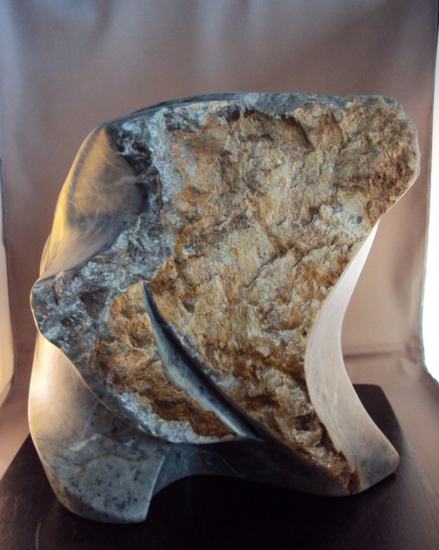 THEA SABELIS (1945)geboren te'sGravenhage .Mijn beelden zijn abstract ,de harde steen die ik bewerk tot een aaibaar lap stof.