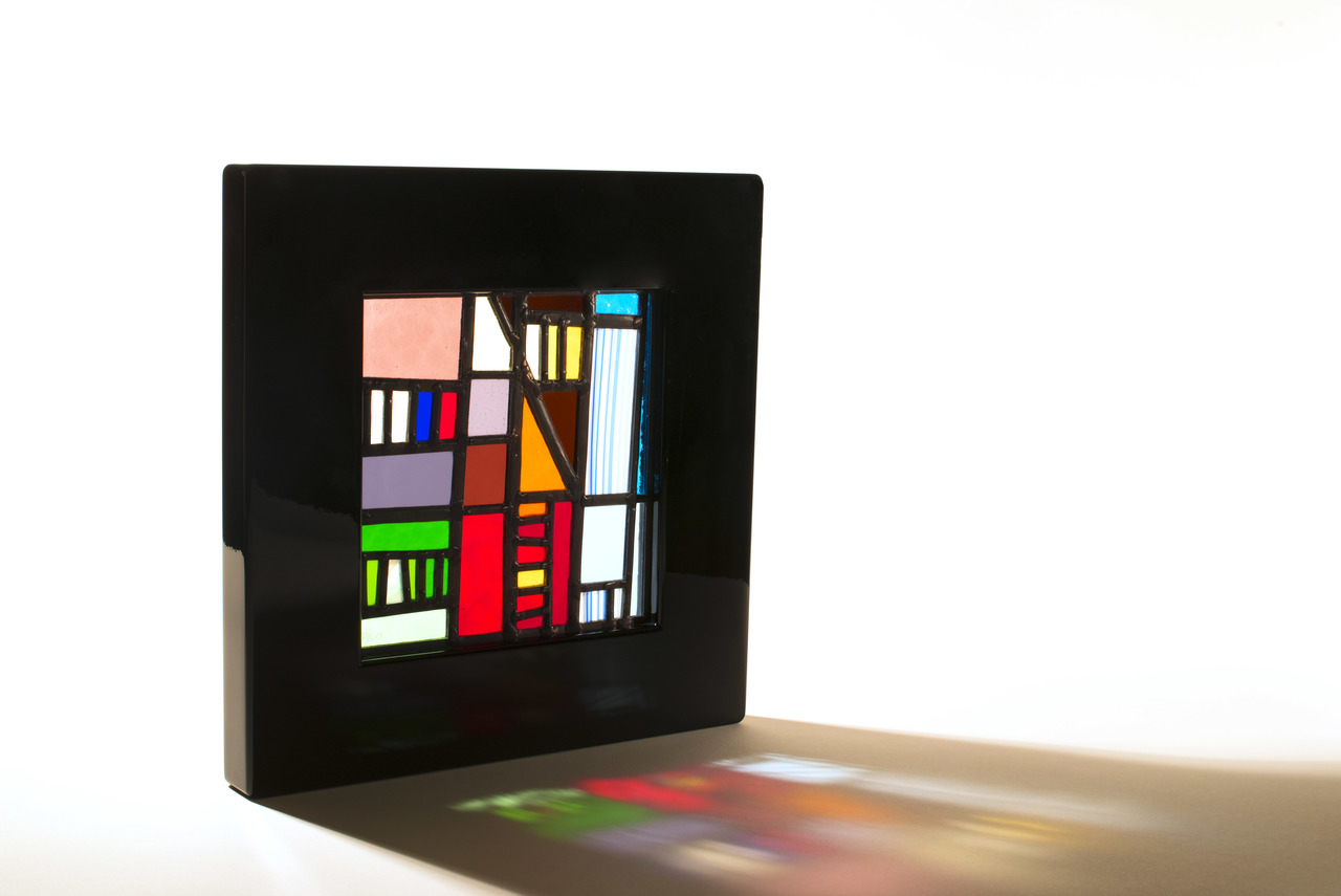 Unicum. Gelimiteerde en genummerde oplage in een hoogglans afgelakt houten frame. Vrijstaand te plaatsen. Het zonlicht zorgt voor een kleurrijke projectie op bijv. een vensterbank.