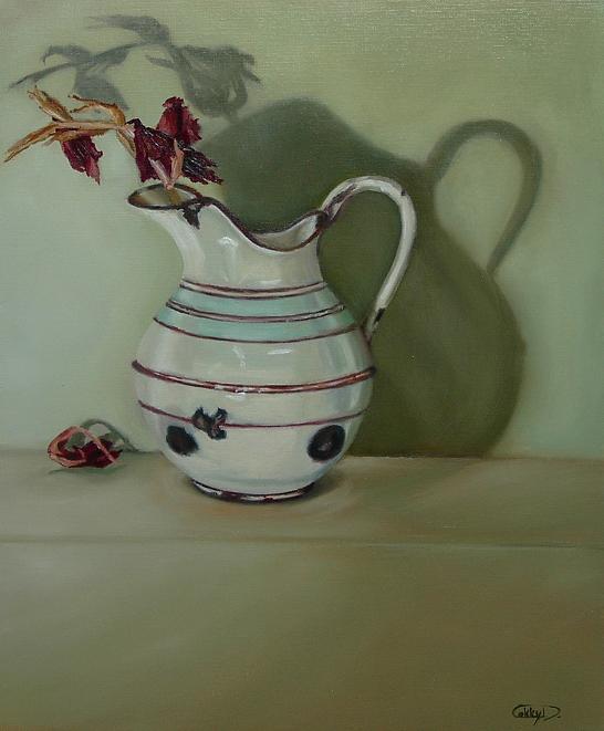 Figuratief Vaas Realistisch Olieverf Doek Kan Schaduw Lichtval Gebruiksvoorwerp Emaille Verdord Waterkan Uitgebloeid Roestig Gladiolen Verdroogd Oud