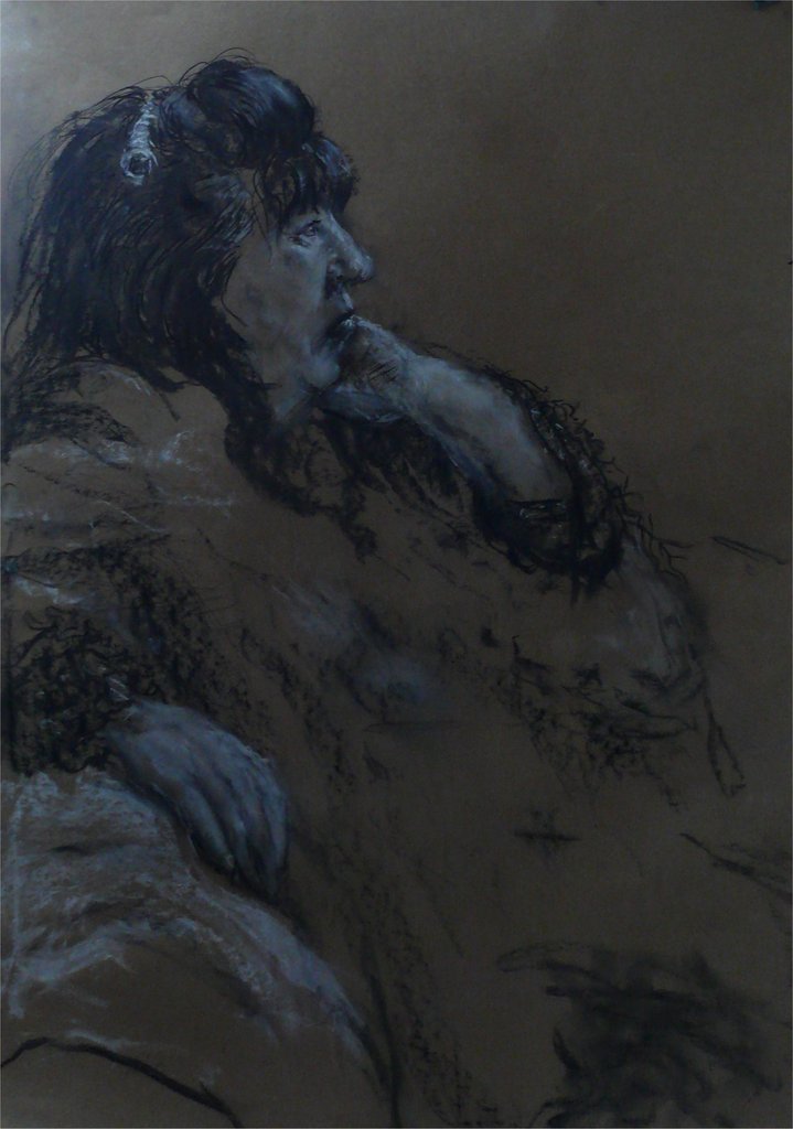 naar model getekend met houtskool, grafiet, kalk en krijt op karton
