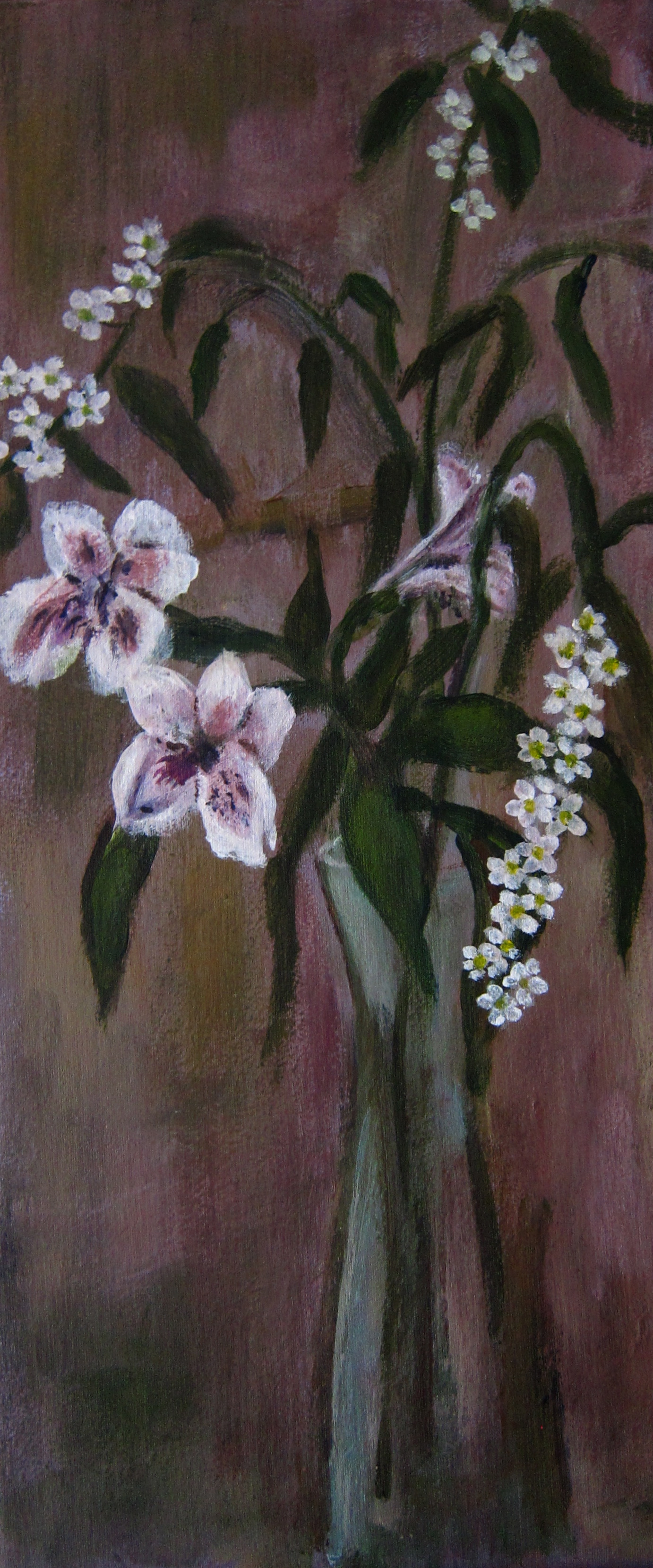 Wit Groen Bloemen Glas Stilleven Roze Violetten Euphorbia Astroemeria