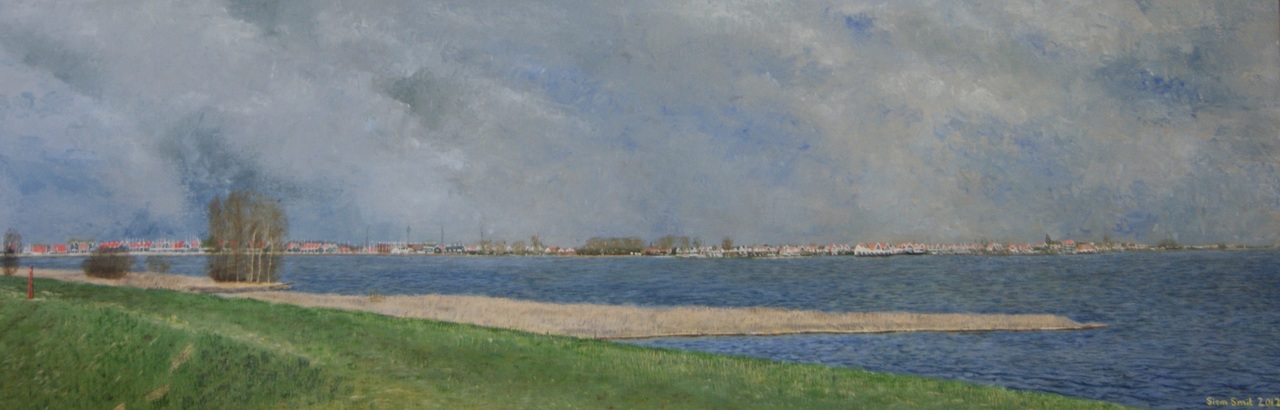Uitzicht vanaf dijk over Gouwzee naar Volendam