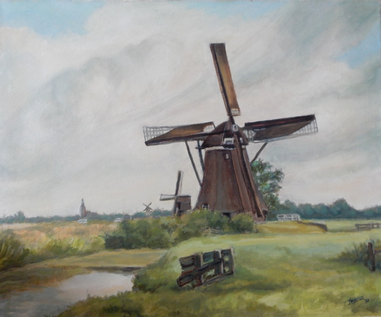 Molen bij Kinderdijk Zuid Holland, geschilderd ter plekke.
