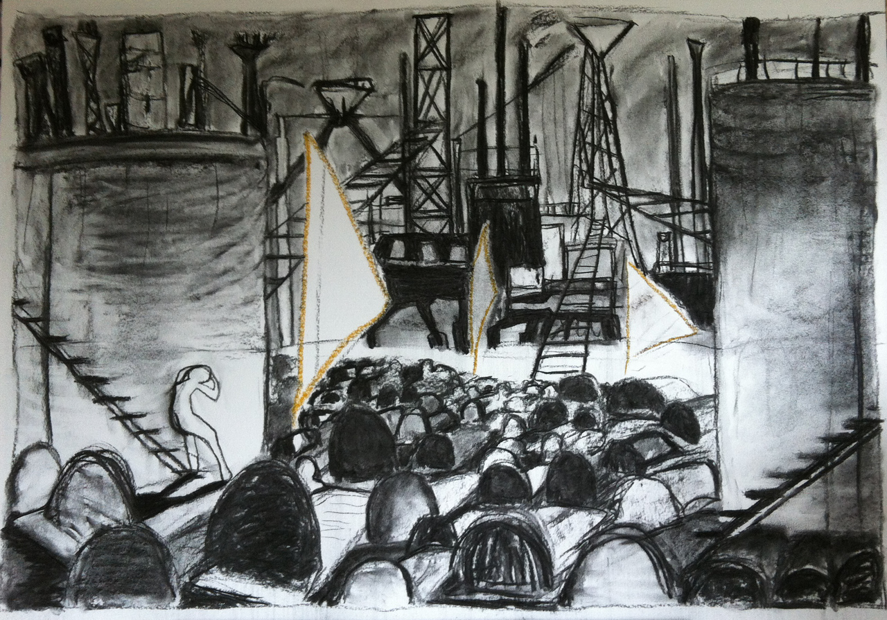 Houtskool op papier ingelijst - 100 x 70 cm - € 975