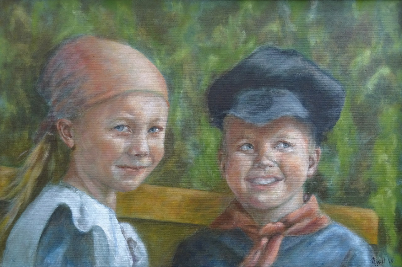 Wit Portret Hart Realistisch Olieverf Doek De Romantisch Vroeger Boerderij Groene Dubbelportret Kiel Nisett Shenya Kunsprijs Boerenkinderen