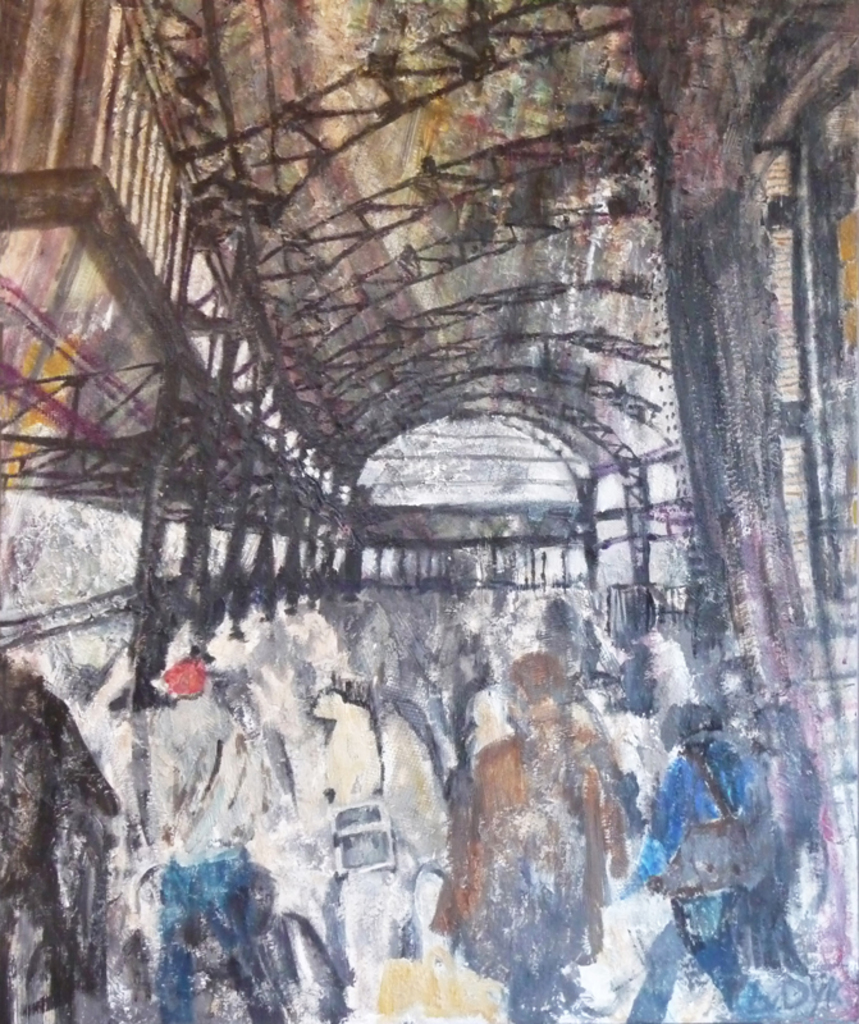 Iets in de buitenwereld intrigeert mij en door deze impressie uit te werken wordt zij blijvend deel van mijn binnenwereld. Laag na laag bouw ik aan de uiteindelijke vorm. Tijdens het werken komt er een stroom van associaties op gang. Het is een constant zoeken naar evenwicht tussen de verf en de andere materialen.