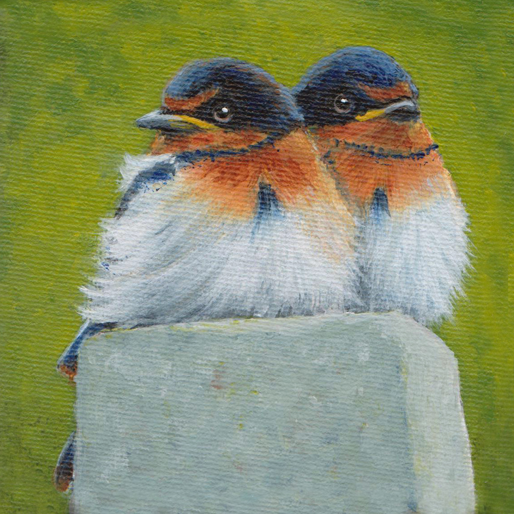 Schilderij Acryl Wildlife Dieren Birds Vogels Miniatuur Zwaluwen Dierenkunst Vogelschilderij Swallows