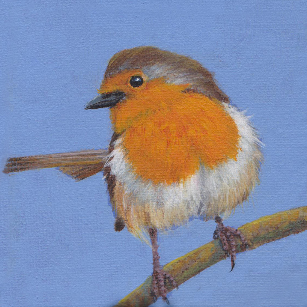 Schilderij Acryl Wildlife Dieren Painting Acrylic Birds Vogels Roodborstje Animal Miniatuur Robin Vogelschilderij Miniature