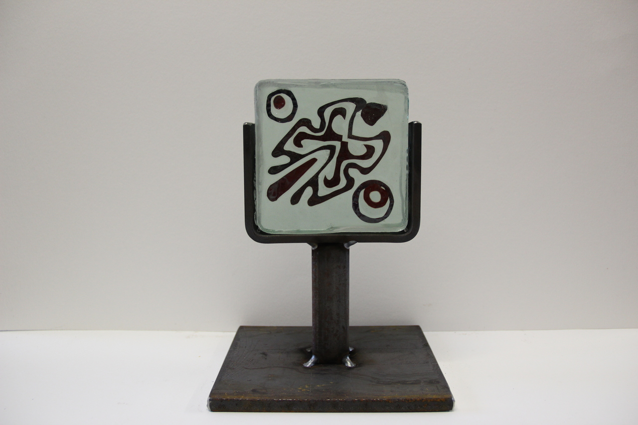 Rood Figuratie Glas Koper Fusing Tekening Metaal Binnen Staal Fossiel Doorzichtig Glasobject
