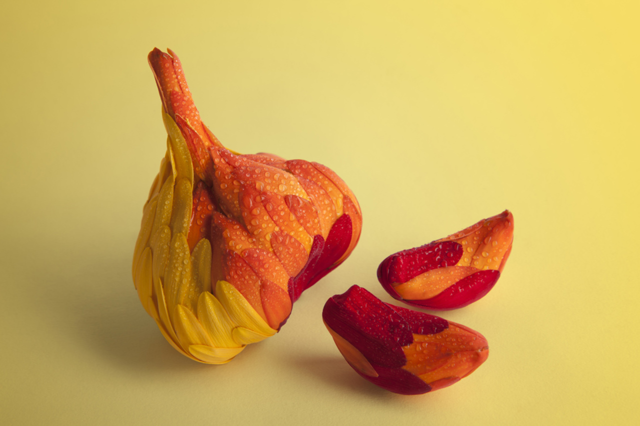 Xiaoling Huang gebruikt verse bloemblaadjes om dagelijkse objecten te verpakken. Zo ontstaat een unieke vorm van stilleven fotografie.