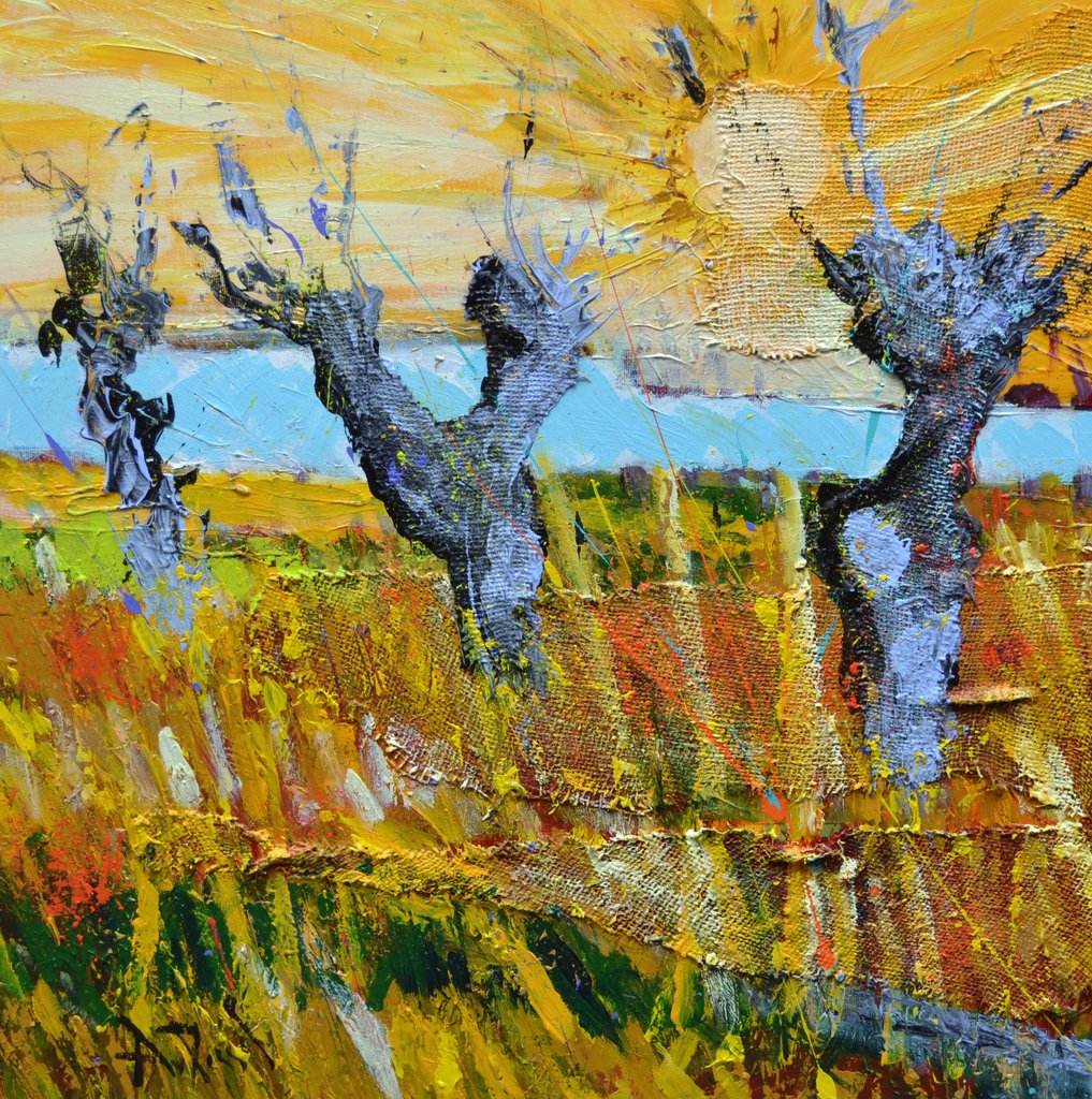 Knotwilg bij ondergaande zon. Naar een doek van Vincent van Gogh die hij schilderde in Arles oktober 1888. Gemaakt ter gelegenheid van het jaar van van Gogh 2015. VERKOCHT