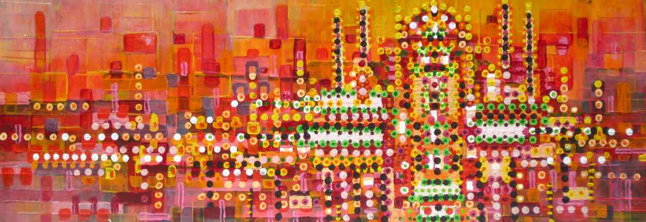 Mijn werk is zeer kleurrijk. Ik balanceer graag op de grens tussen figuratief en abstract, waarbij ik mijn eigen droomwereld creeer. Mijn inspiratie haal ik uit de natuur en het materiaal.