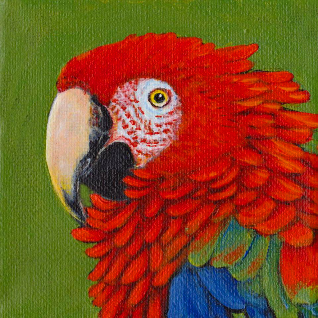 Schilderij Acryl Vogel Rode Wildlife Papegaai Bird Miniatuur Ara