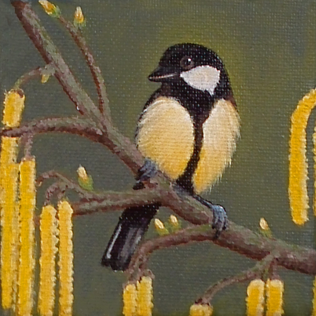 Schilderij Acryl Vogel Wildlife Painting Acrylic Bird Koolmees Miniatuur Tit Miniature