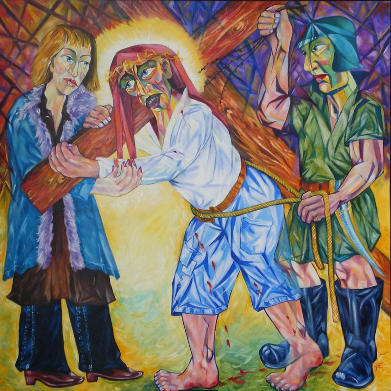 In de vierde statie ontmoet Maria haar zoon Jezus op weg naar Gogholta, waar hij de kruisdood zal sterven.