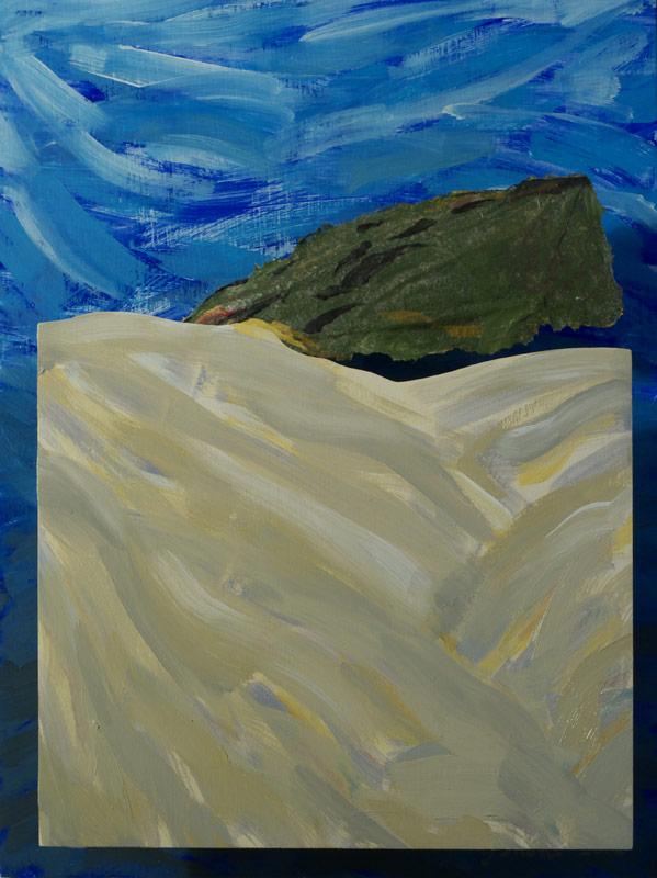 Ruimtelijk schilderij. Olieverf op panelen, pigment en encaustiek op papier maché.