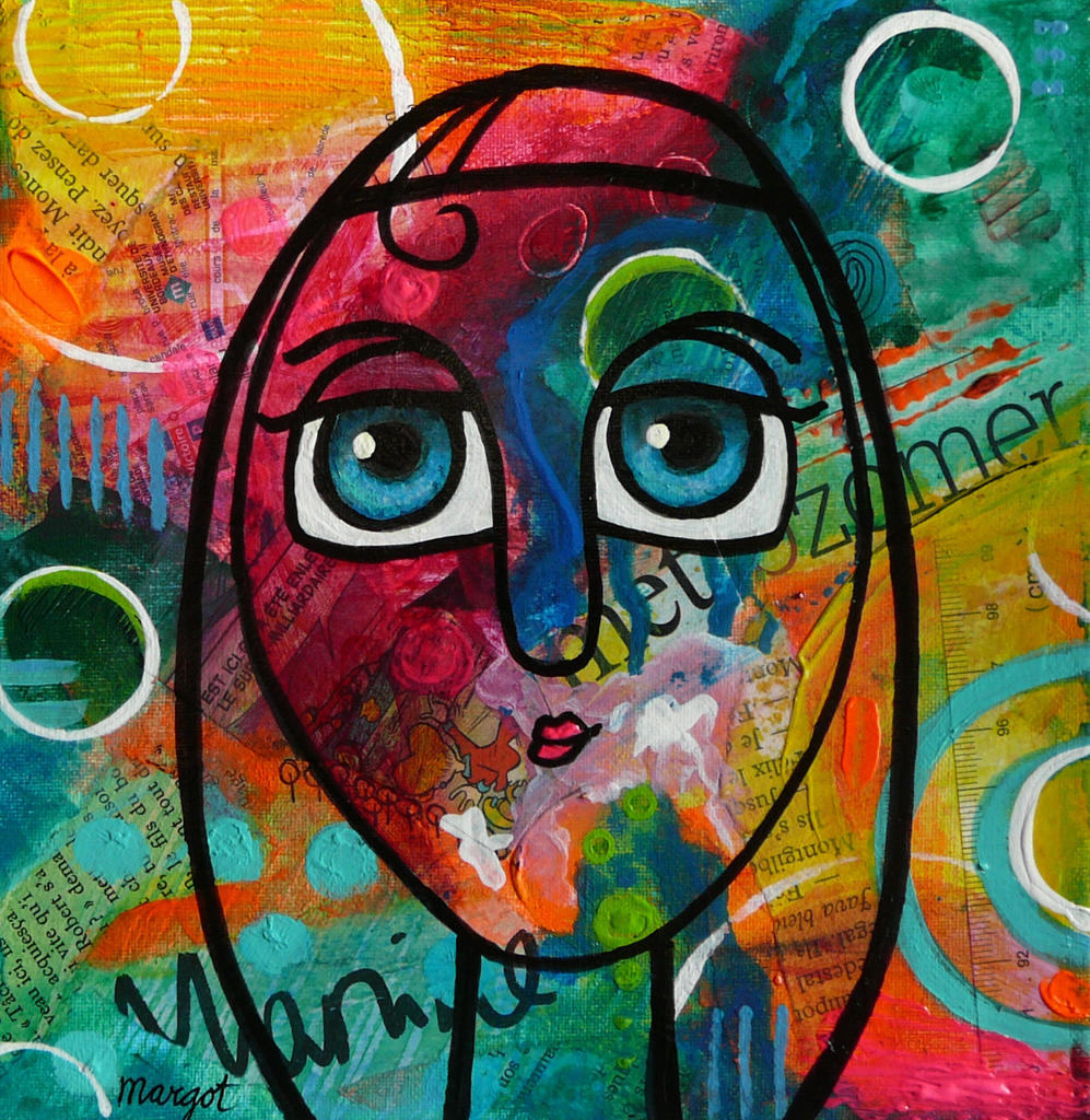 Margot kan zich niet tot één stijl beperken. Ze flitst van portretten naar collages naar abstractie naar illustraties. Het is maar net hoe de pet staat. Maar één ding staat vast: kunst is haar passie!