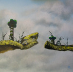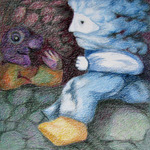 Groen Tekening Green Roze Drawing Fantasie Konijn Wolk Pink Kleurpotlood Fantasy Cloud Rabbit Colorpencil