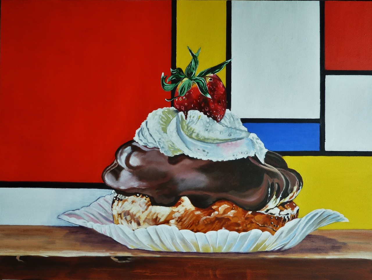 Rood Geel Blauw Kleurrijk Eten Aardbeien Mondriaan Chocolade Slagroom Moorkop Popart