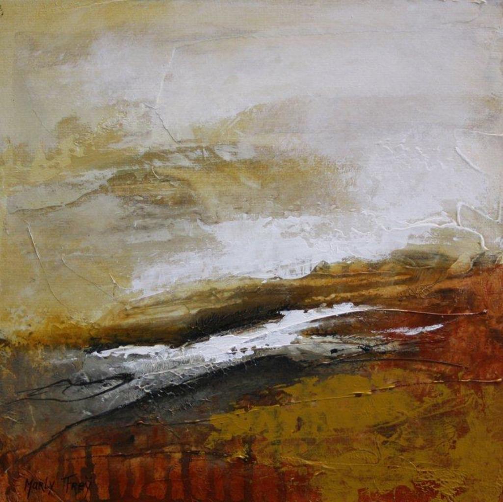 Marly Freij maakt grote kleurrijke, maar ook meer ingetogen schilderijen in gemengde techniek, met name sferische landschappen en abstracte composities