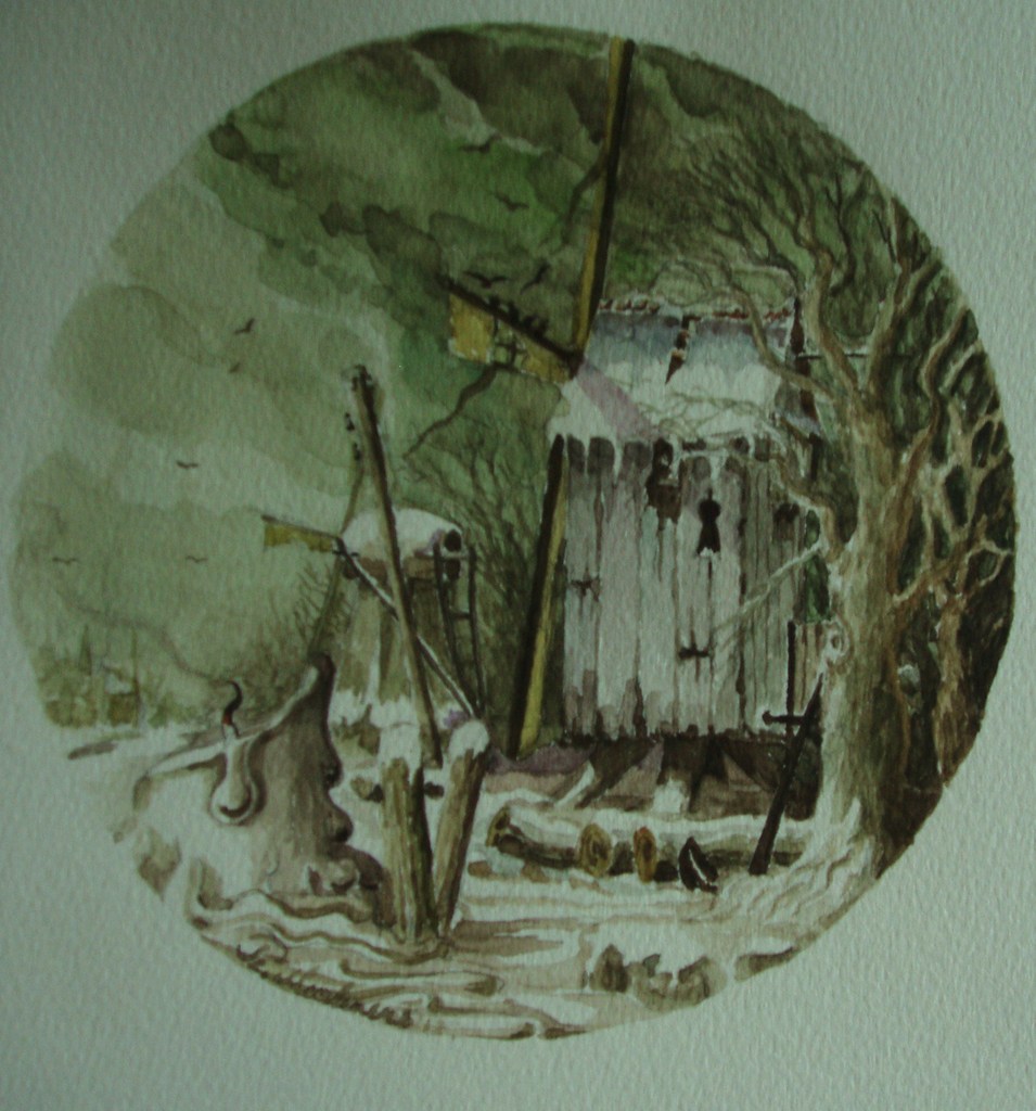 Landschap Romantiek Papier Aquarel Winter Realisme Fantasie Molen Kaars Kerst