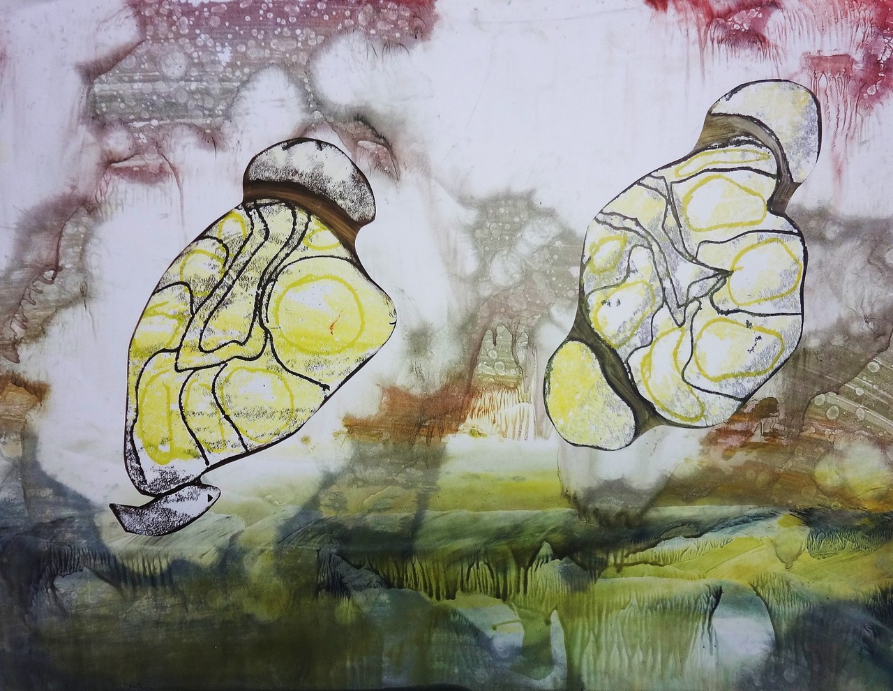 Ik werk impulsief,gedreven en intuïtief.De natuur is mijn grootste inspiratiebron.De landschappen in mijn etsen en monotypes stralen een bepaalde sfeer uit:romantisch,dreigend, verlaten en spannend.Het onderwerp kan beïnvloed worden door iets inspirerends wat op mijn pad komt.Naar aanleiding van een bezoek aan de voorraadkelders van de oude medische instrumentenwinkel van A. van der Kuip te Utrecht,heb ik met dit medisch materiaal zowel ruimtelijk werk,dozen en glazen boxen,als vlak werk gemaakt waaronder monotypes,clichedrukken,collages en tekeningen.