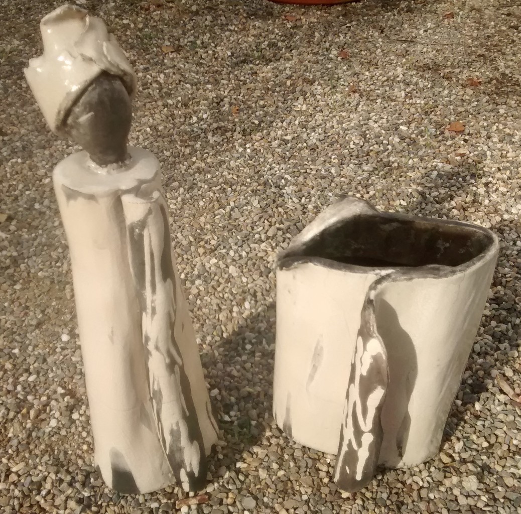 Jacqueline maakt mensfiguren, dieren, urnen, vazen en bloemen van keramiek. Het glazuren en Raku stoken is altijd weer een verassing!