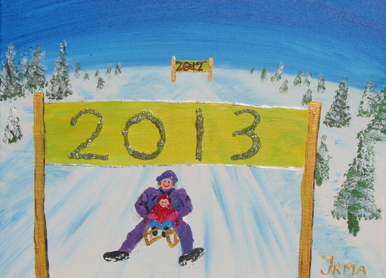 Kerstkaart 2012 en nieuwjaarsgroet voor 2013. Resultaat workshop Kerstkaarten Schilderen.