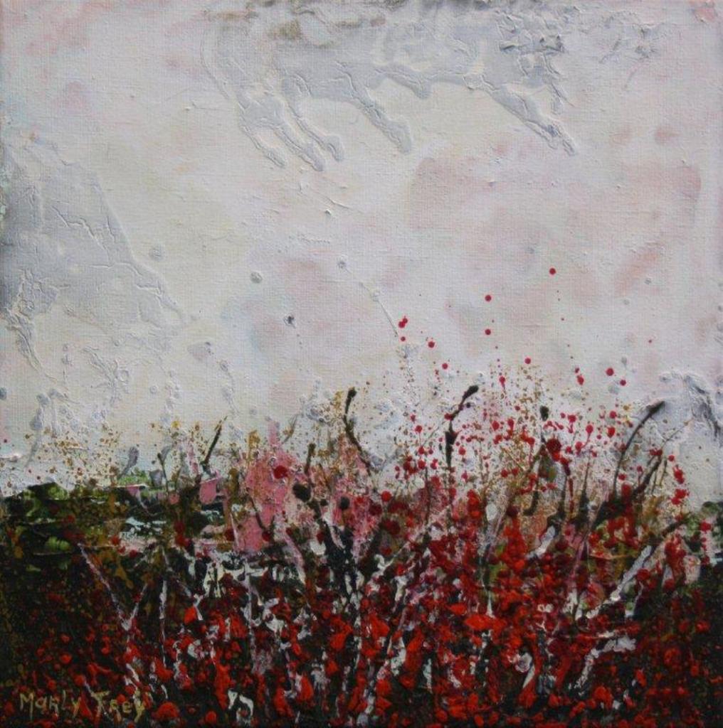 Marly Freij maakt grote kleurrijke, maar ook meer ingetogen schilderijen in gemengde techniek, met name sferische landschappen en abstracte composities