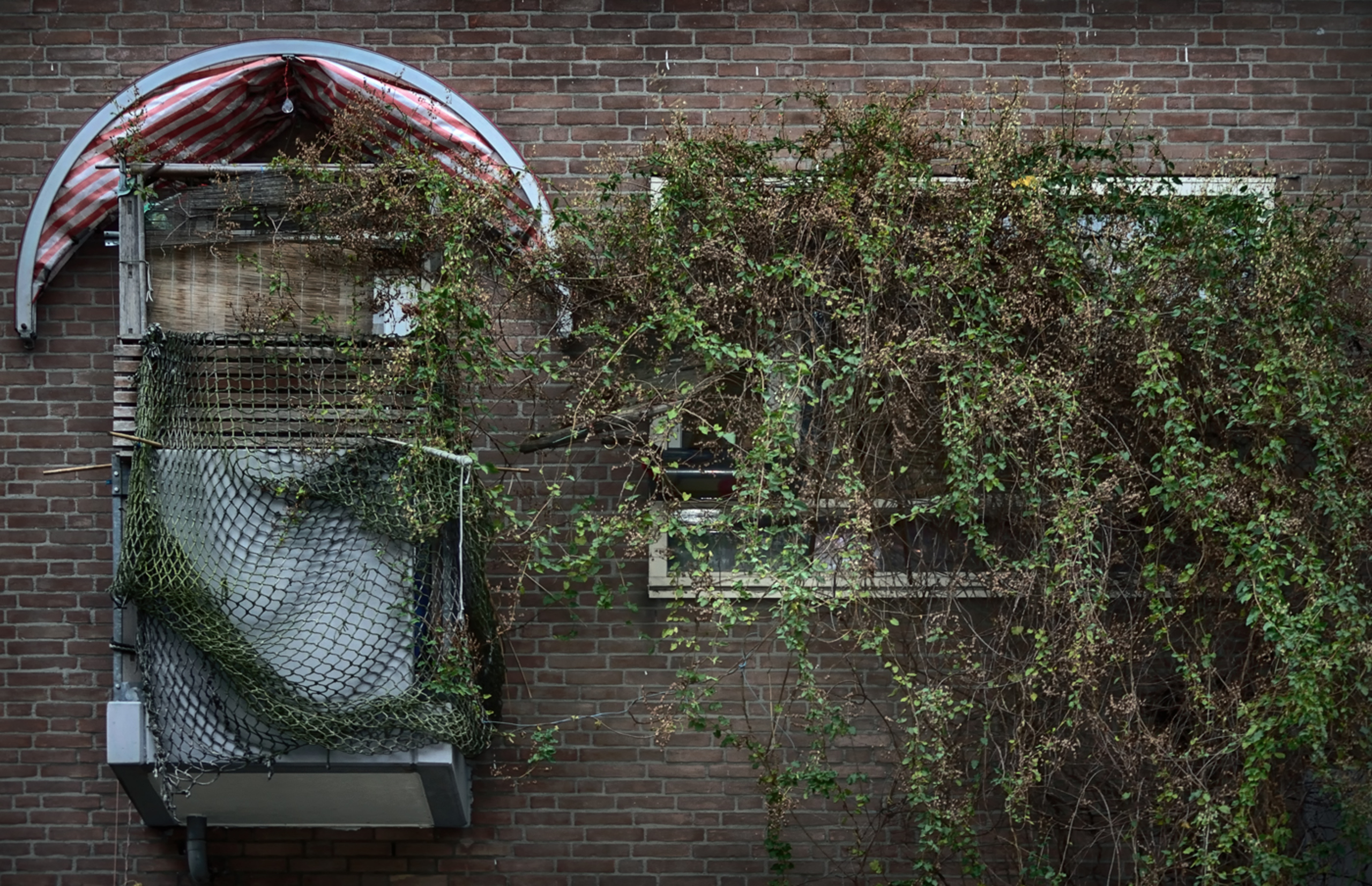 Amsterdam Ramen Straat Balkon Urban Begroeiing Klimop Stedenfotografie