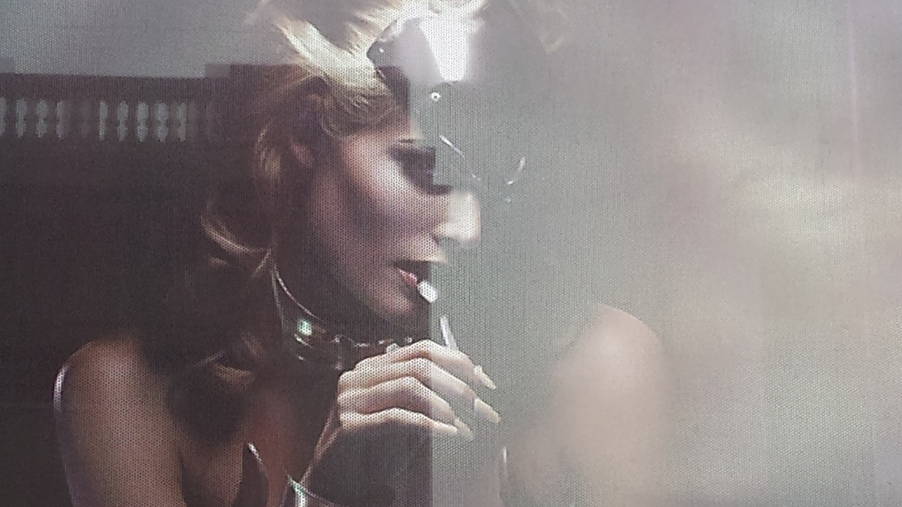 Beeld van vrouw met spiegeling op de poster. Antwerpen 2015