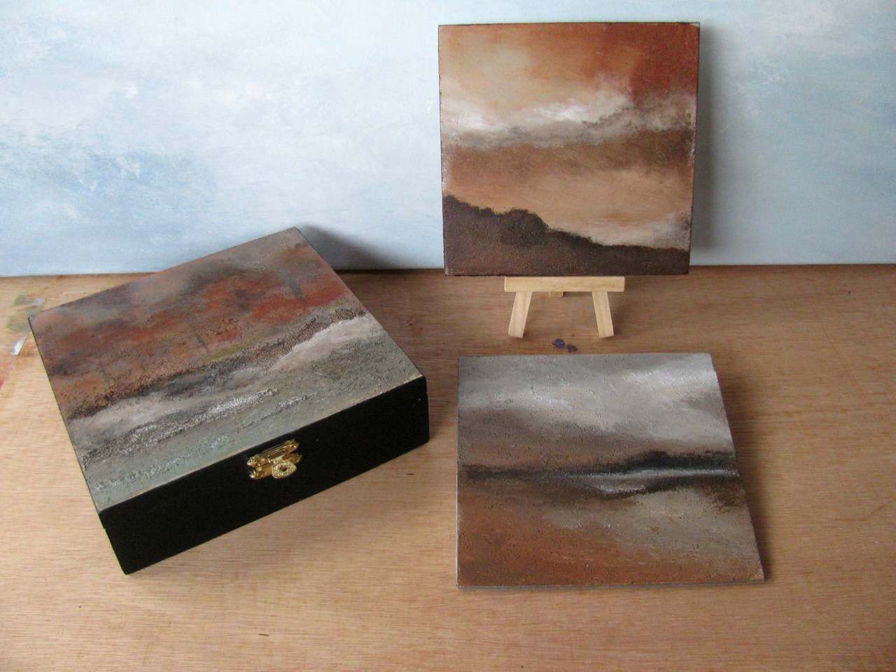 Kistje met twee schilderijtjes